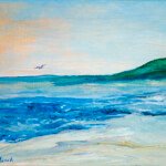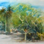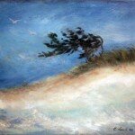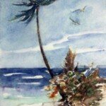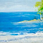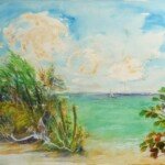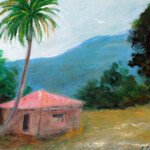 Since Evangeline was born in Haiti and home schooled by her mother until she was fourteen, her early influences were filled with the exotic sounds, scents and colours of the Caribbean. Her painting was naturally imbued with an awareness of rich vibrant colour and only became less so when she chose to use the more subdued colours that she encountered in Canada. Later on in her life the colours and influences tended to blend so the viewer might become aware of incongruent elements or colours appearing in some of the artwork. She returned frequently to the Caribbean and her love of the sun, water and the colours of her birthplace always shone forth in much of what she did as an artist.